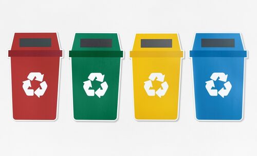 リサイクルボックスは、そのまま "recycle box" でも間違いではないですが、”recycle bin(s)”や"recycling container(s)"のような表現をアメリカではよく見かけます。