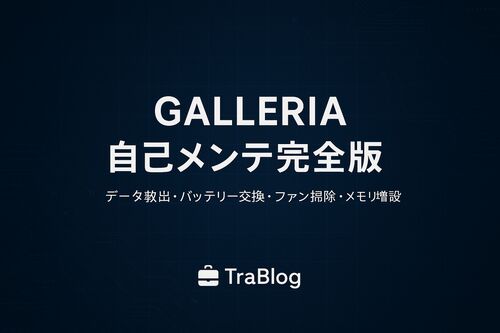 GALLERIA GCR1650GF7の自己メンテ完全版。電源不良時のデータ救出、タッチパッド浮きに直結するバッテリー交換、冷却改善のファン掃除、体感を変えるメモリ増設を、初心者でも迷わない手順と注意点でまとめました。対応機種も掲載。安心。