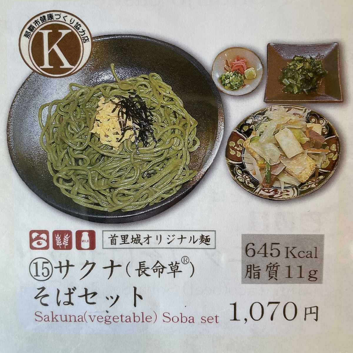 首里城オリジナル麵を使った『サクナ(長命草)そばセット』
